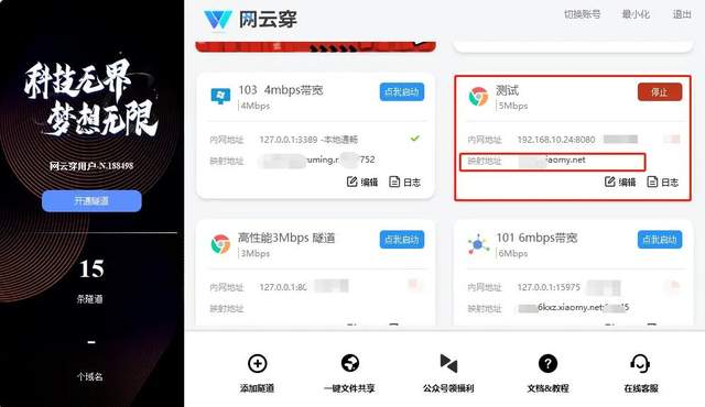 2、领取隧道后,我们跳转到控制台,配置隧道信息