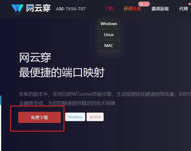 3、配置完隧道,我们下载客户端,我的是windows系统,免费下载默认就是windows版本