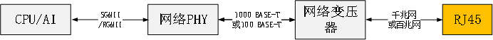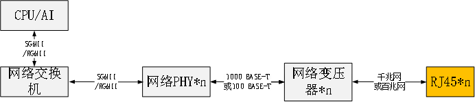 CPU/AI处理器有专门的MAC接口,具体使用SGMII还是RGMII接口?需要根据其数据手册进行查看,确认之后进行网络PHY接口的选型,选用RGMII接口时需要确保电的匹配,RGMII的电压不同对应的PCB的走线长度是不一样的,常用的RGMII接口电压有1.8V/2.5V/3.3V,电压越大对应可容忍的PCB走线长度越长,一般情况下3.3V的RGMII在PCB上的走线长度建议控制在5000mil以内,1.8V的RGMII在PCB上的走线长度建议控制在2500mil,且此要求为经验值,具体要求可参考使用的CPU/AI处理器的PCB设计建议。