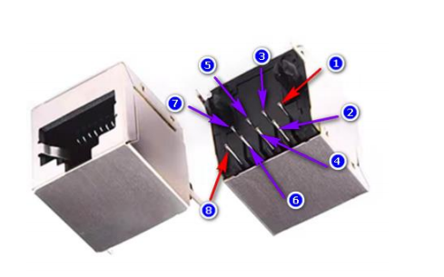 在研发调试过程中经常会遇到需要手动飞千兆网络口进行调试的情况,此时就要非常清楚的知道RJ45的接口定义及引脚排列了,如下图所示: