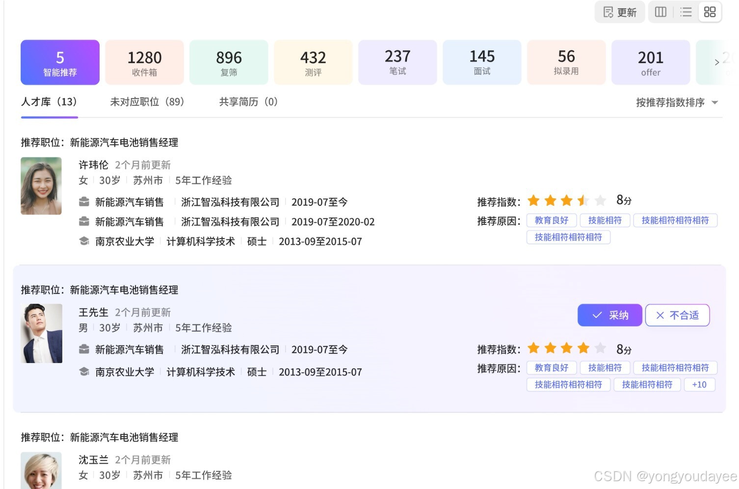 同时,系统还可以根据候选人的职业路径、兴趣爱好、社交行为等,对候选人进行智能化的推荐,帮助企业发现潜在的人才资源。此外,系统还支持对人才库进行定期维护和更新,确保人才数据的准确性和时效性。