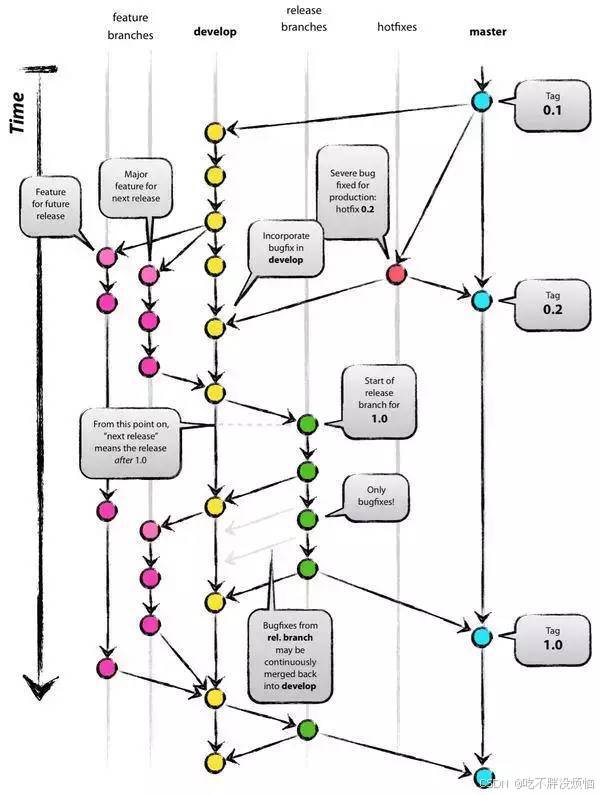 develop 为开发分支,始终保持最新完成以及 bug 修复后的代码;一般开发的新功能时,feature 分支都是基于 develop 分支下创建的。