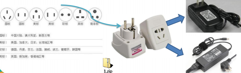 现实生活中的适配器例子: 泰国插座用的是两孔的(欧标),可以买个多功能转换插头 (适配器) ,这样就可以使用了。