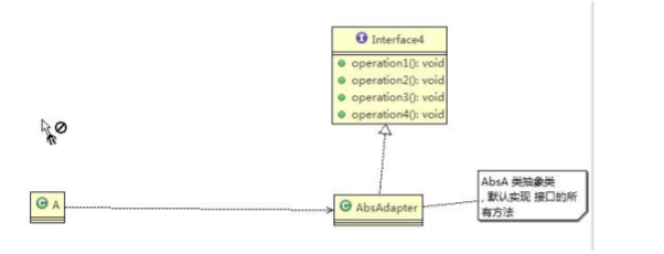 当不需要全部实现接口提供的方法时,可先设计一个抽象类实现接口,并为该接口中每个方法提供一个默认实现(空方法),那么该抽象类的子类可有选择地覆盖父类的某些方法来实现需求。