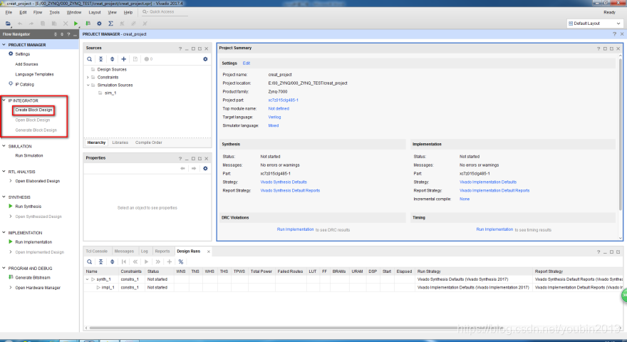 本文详细介绍了使用Vivado 2017.4创建ZYNQ工程的过程,包括工程搭建、IP配置、生成.bit文件及SDK调试等内容,是ZYNQ初学者的重要参考资料。