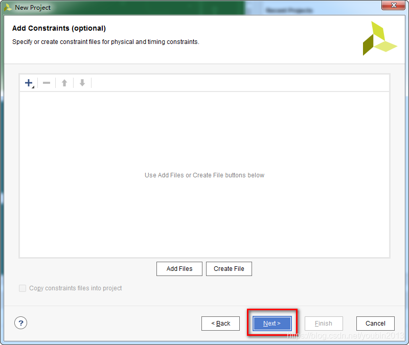 6,出现对话框如图6所示,该步骤为添加现有的约束文件,创建空的工程,直接点击下一步。
