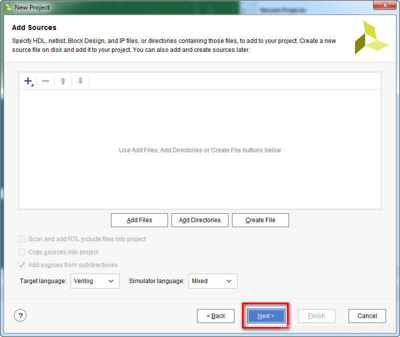 4,下一步后出现对话框如图4所示,该步骤是确定需要创建工程的类型,我们选择RTL工程,该类型的工程可以添加源文件,创建IP大框架,生成IP,综合分析和实现等。点击下一步。