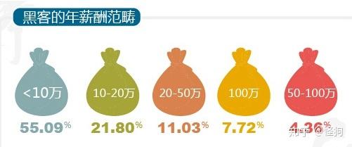 黑帽黑客大多数做黑产多一些,如ddos网站,拿数据等。但是大多数黑帽黑客都是自学或者依靠工具或者其他野路子,这些黑帽占比还比较大,他们没有稳定收入,收入只有几万甚至是0收入。他们大多是业余爱好者,没有研究透。仅有少部分顶级黑帽年收入在百万以上,注意是少部分。