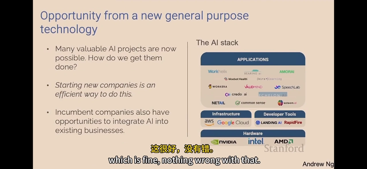 吴恩达建议创新企业从 AIGC 应用层(Application) 切入