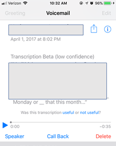 举例来说,iPhone 的语音邮件转录服务对其低信度是透明的,并为用户提供了一个选项来帮助苹果通过提交语音记录来改进转录。