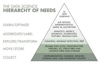 数据科学需求层级金字塔(源于 Insight 的顾问 Monica Rogati )很好地呈现了 AI 产品技术堆栈。
