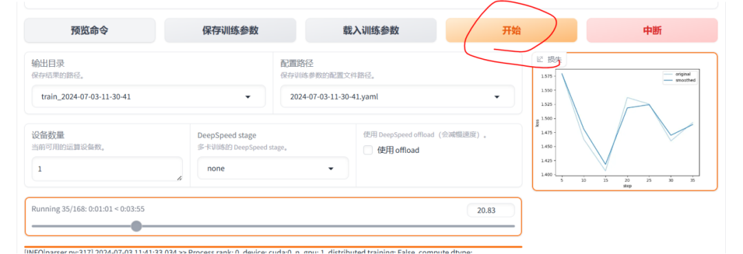 在开始训练之前,用户可以预览所有的训练参数,确保配置无误。
