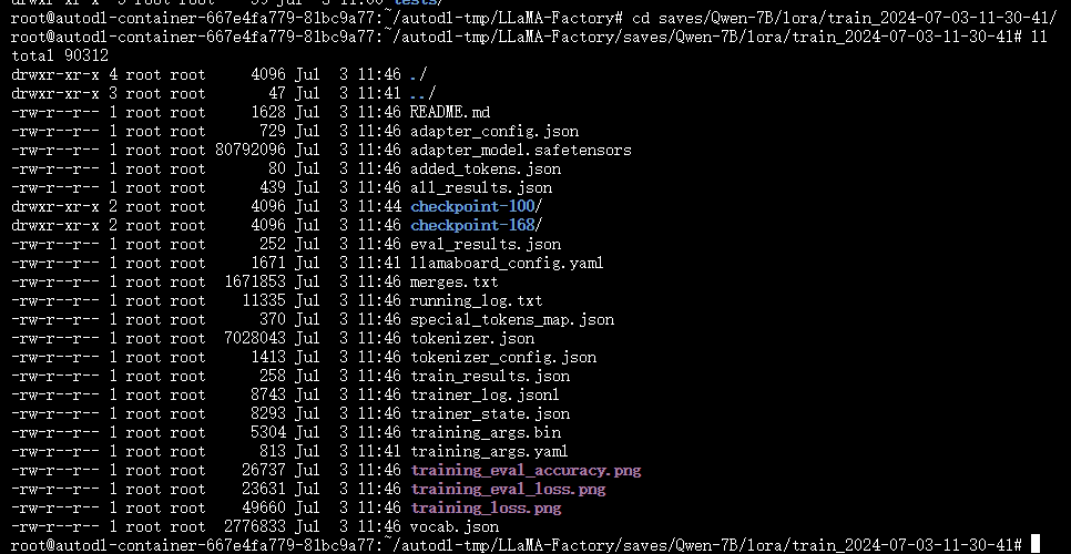 训练完成后,会在本地输出微调后的相关权重文件,Lora权重文件输出如下: