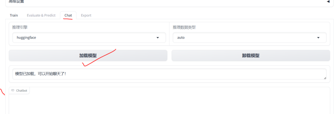在高级设置中有一个“Chat”页签,可用于模型推理对话