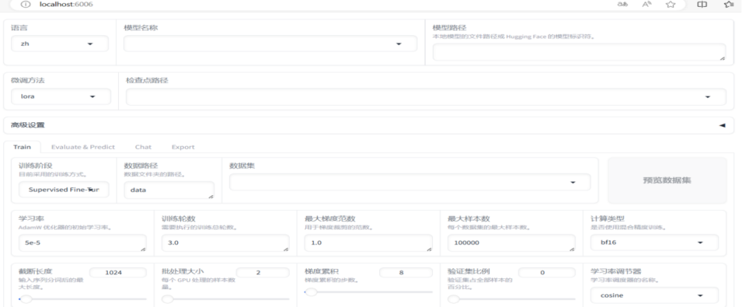 通过访问Web UI,用户可以进行模型的配置、训练参数的设置以及微调过程的监控。