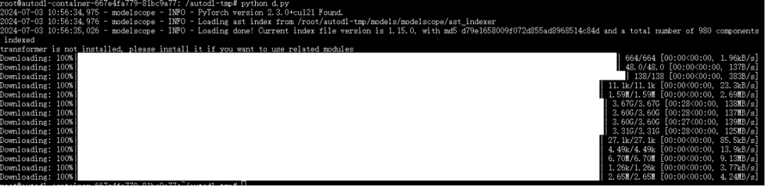 运行python /root/autodl-tmp/d.py 执行下载;执行完成如下: