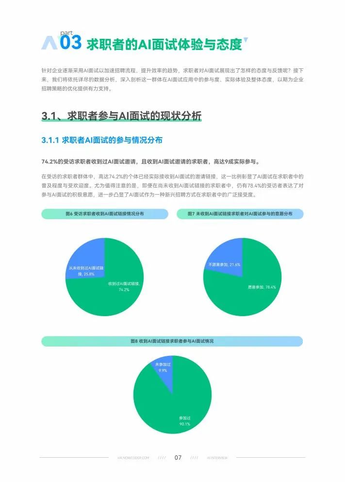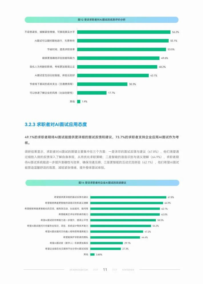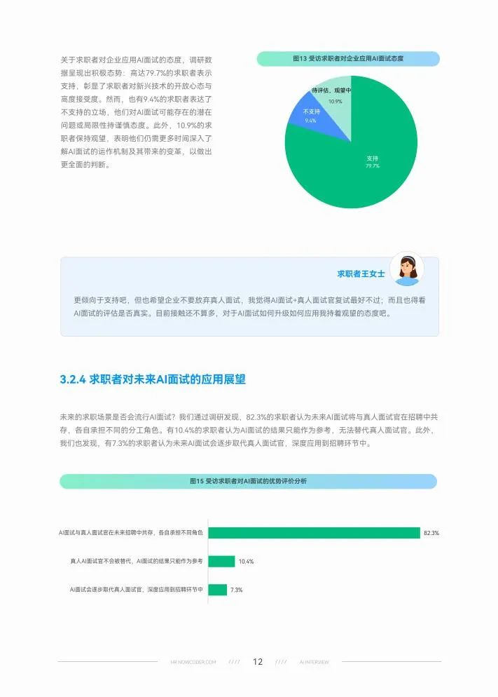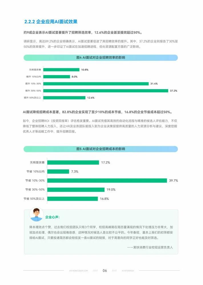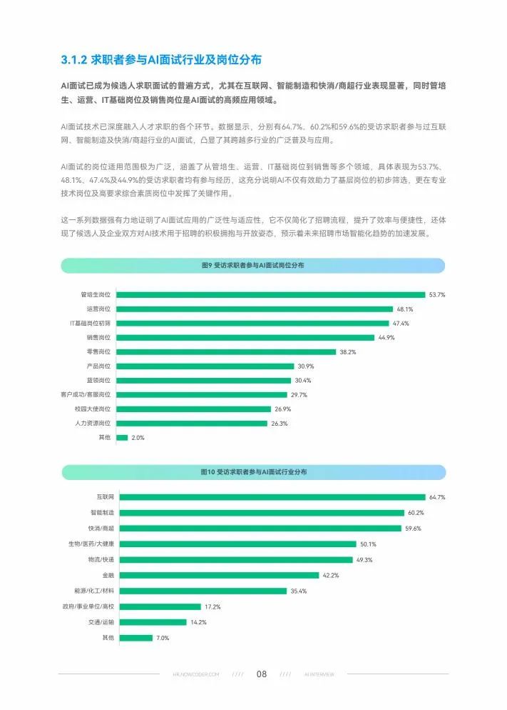 此份手册介绍了AI面试在招聘领域的广泛应用与前景,分析了其应用现状、技术发展和企业的实践案例。随着AI技术的进步,AI面试成为企业提高招聘效率和降低成本的重要工具。通过对互联网、制造、快消等多个行业的调研,报告指出AI面试不仅提升了招聘的透明度和公平性,还能打破时间和地域限制,显著加速招聘流程。AI面试的广泛应用特别集中于管培生、产品和蓝领岗位,企业的AI面试普及率不断上升,展现了招聘智能化转型的必然趋势。报告提供了多项实际案例,并探讨了未来AI面试的应用前景。