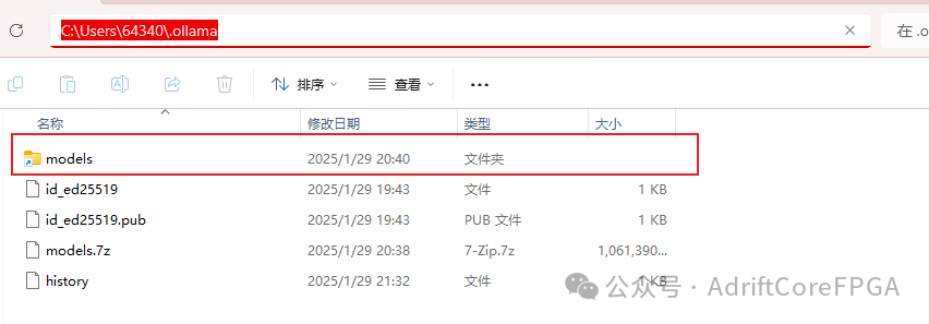 如果我们使用windows系统安装,ollama默认安装在系统盘,而往往系统盘的容量不够大,我们可以将deepseek安装到其他盘中,但目前,ollama 本身并没有提供直接的、官方的选项来修改模型存储路径。我们可以使用符号链接的方式将对应文件夹链接到D盘文件夹,这样ollama读写文件只会读写对应D盘的链接文件夹。