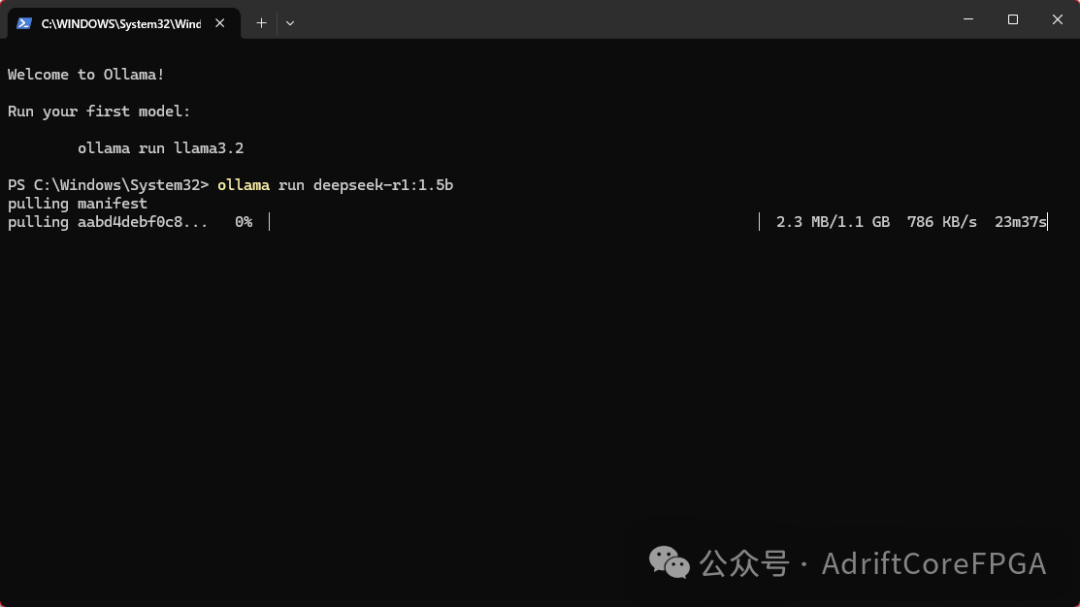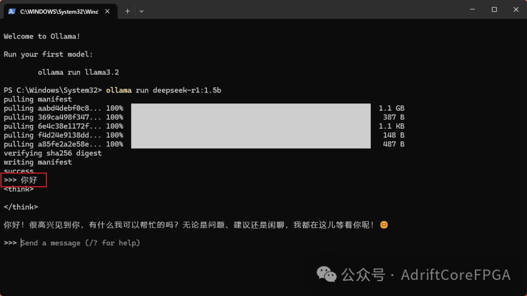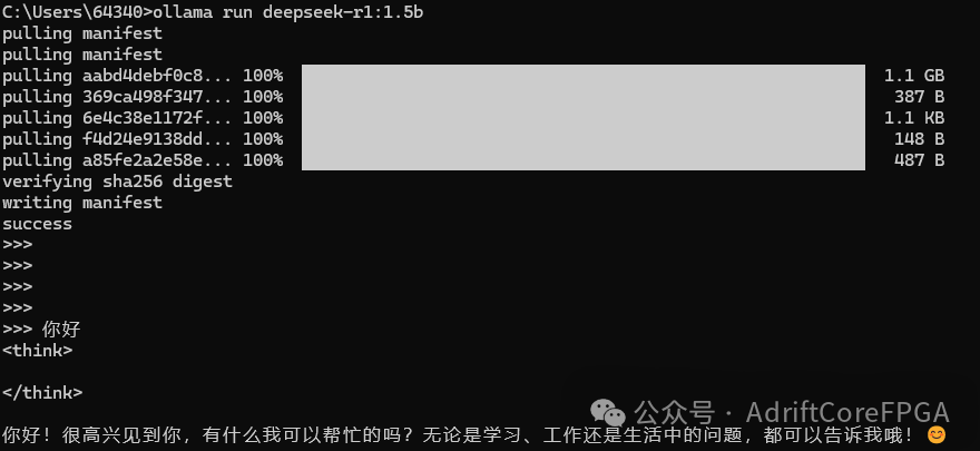 打开cmd,输入所下版本同样的命令,则可以使用deepseek: