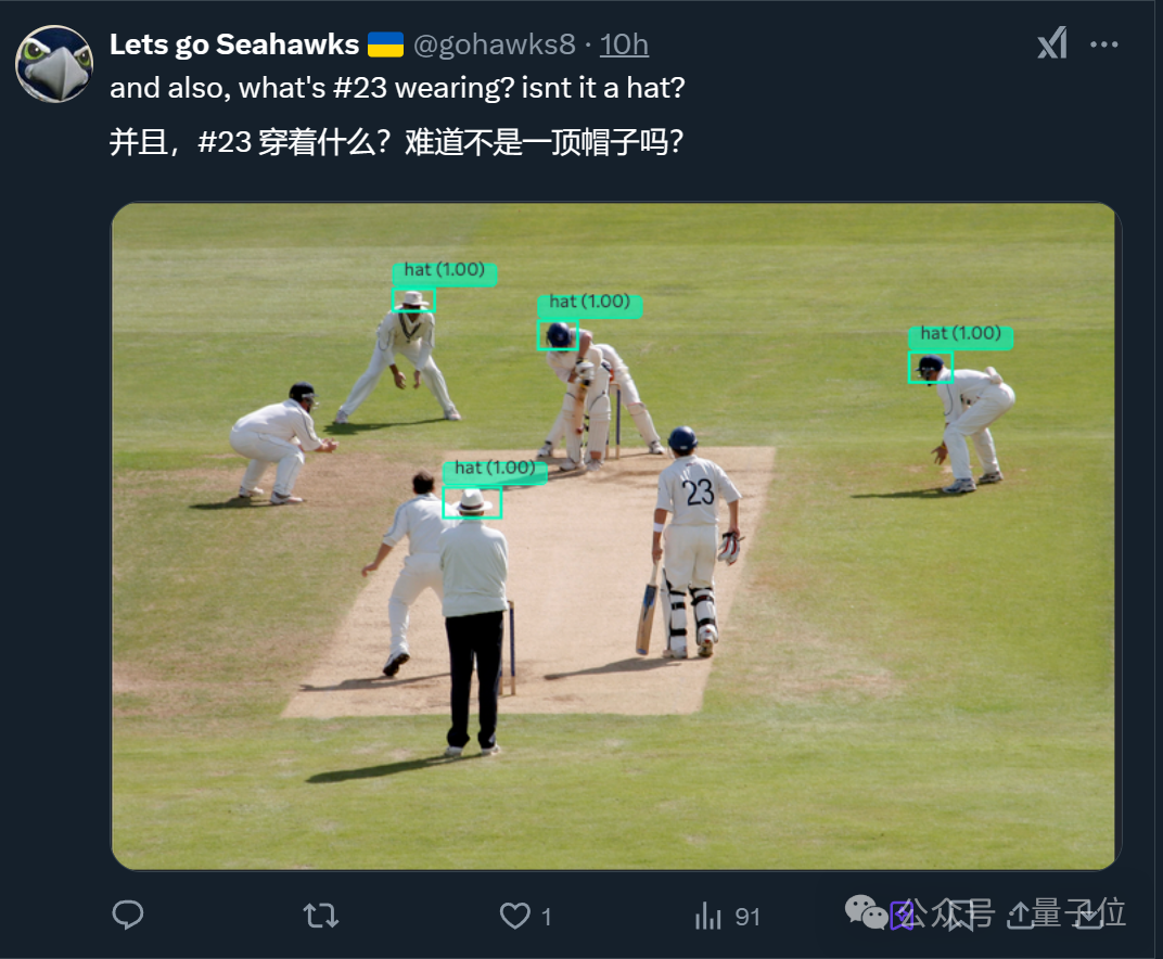 同一张图,当网友试图找出戴帽子的人,AI明显漏了,一眼就能看到23号队员。