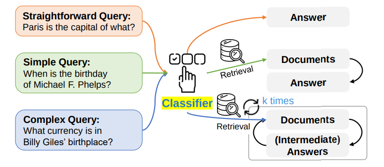 原理:模型判断是否需要外部知识支持;若能直接回答,则跳过检索流程。