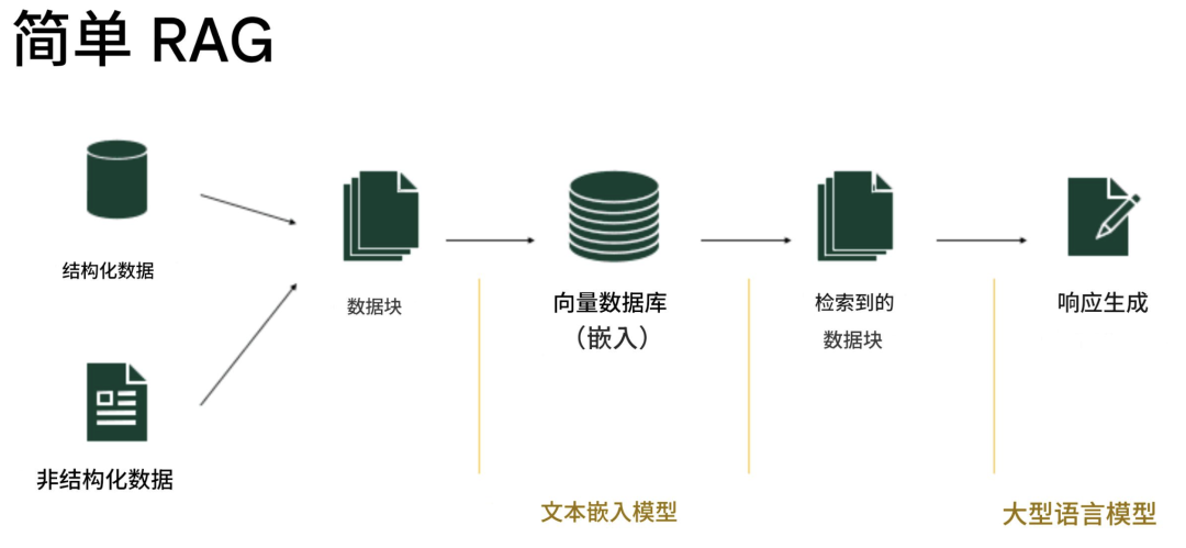 原理:将问题向量化 → 检索向量库中的文档片段 → 拼接后交给LLM生成。