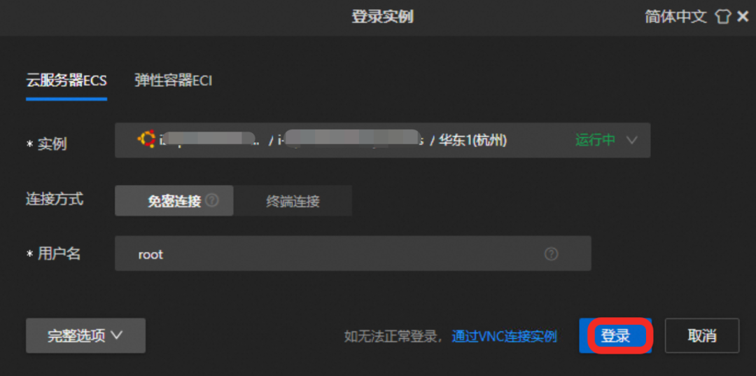 单击左侧的远程连接按钮,再单击登录,即可连接到 GPU 云服务器。