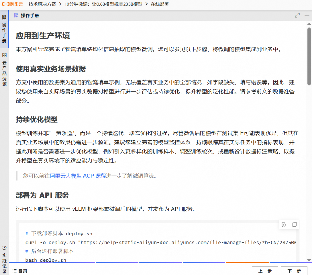 您也可以通过在aliyun.com 直接搜索“10分钟微调,让0.6B模型媲美235B模型”即可直达技术解决方案,获得更多部署方案。