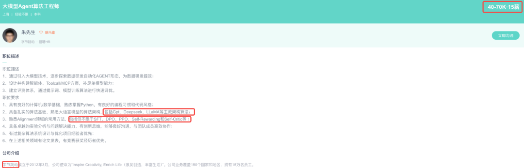大模型技术是诸多前沿领域发展的基础。最具代表性的是RAG和AI Agent,企业对掌握 RAG、Agent 等技术的人才需求高涨,这些技能已成为 AI 从业者的核心竞争力。算法开发、工具链开发、后端、产品经理、架构师等等相关岗位需求非常旺盛,算法核心岗位的年薪更是一骑绝尘!