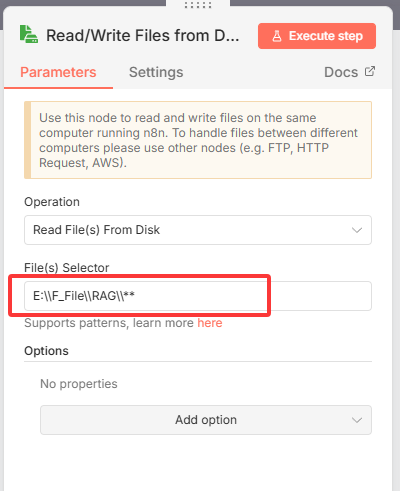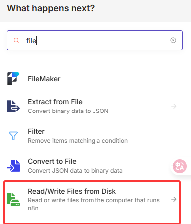 file,找到Read/Write Files from Disk节点。 - 选择操作:勾选