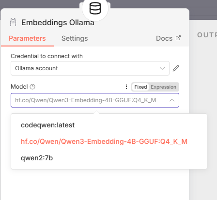 Model下拉框中,选择已部署的hf.co/Qwen/Qwen3-Embedding-4B-GGUF:Q4_K_M模型。