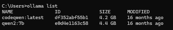 若之前已下载过模型,先在CMD中输入ollama list查看已安装模型:
