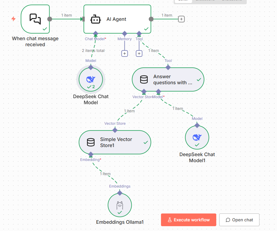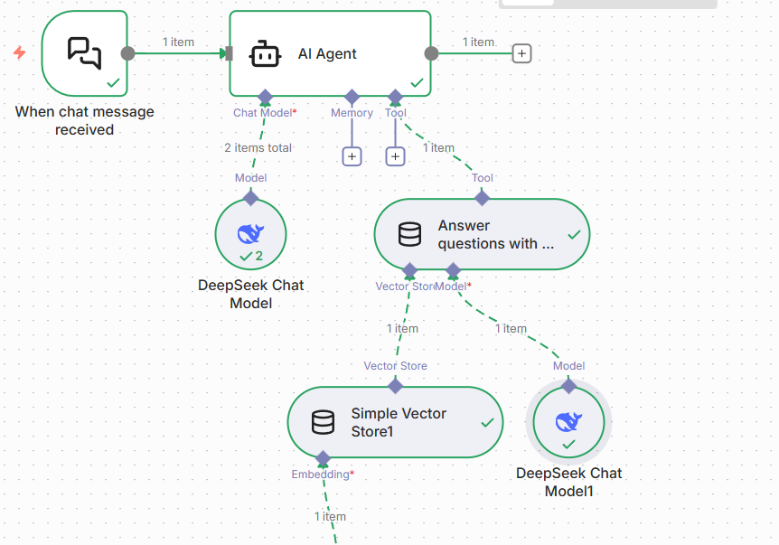 AI Agent用于衔接对话模型与向量存储,实现“检索+生成”一体化,步骤如下: