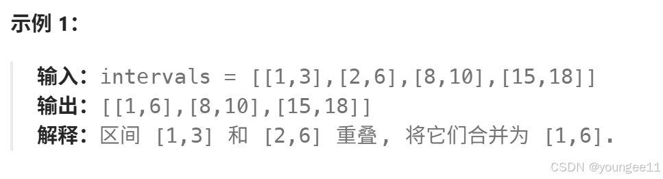 以数组表示若干个区间的集合,合并所有的重叠区间,返回一个不重叠的区间数组。