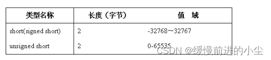 (3). short unsigned short ———短整型 占2存储单元(2个字节)