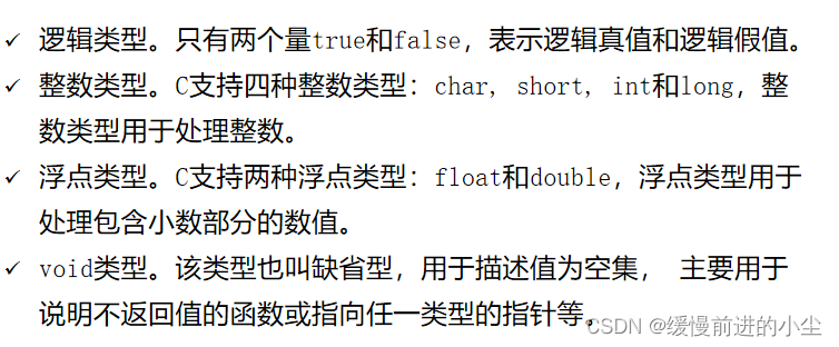 本文介绍了C++中的基本数据类型,包括有符号和无符号的整型如int、unsignedint、short、unsignedshort,以及长整型long和长长整型longlong。此外,还涵盖了逻辑类型bool,其值域为true和false,以及char类型,用于表示单个字符或字符串。最后提到了浮点类型float的应用示例。