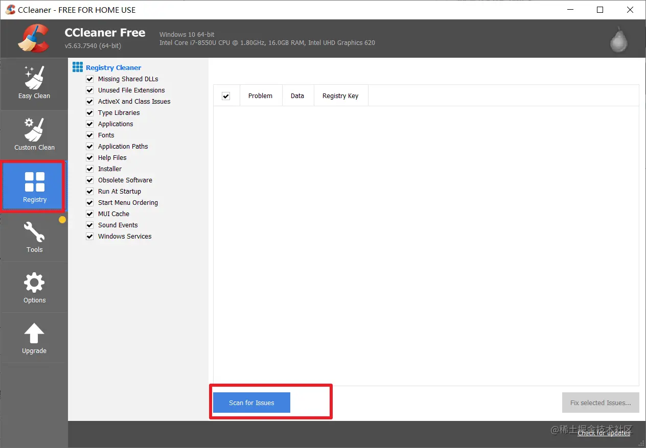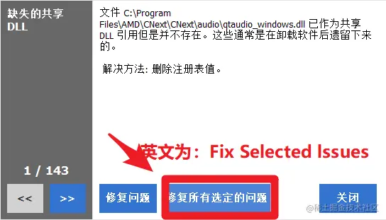 扫描后, 点击“Fix selected Issues”按钮进行处理所有注册表垃圾信息,