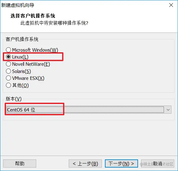 选择引导系统是Linux并选择系统版本是CentOS