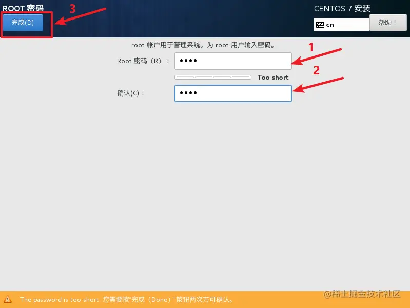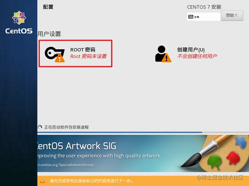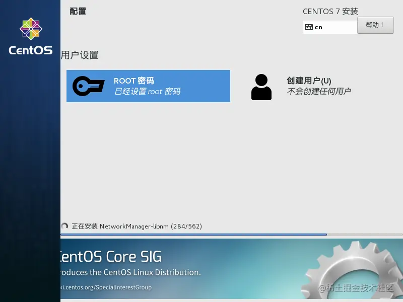 设置root管理员密码,设置完后,就正在安装了。