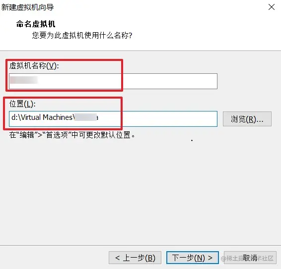 选择安装位置,然后并给你想要创建的虚拟机起个名字