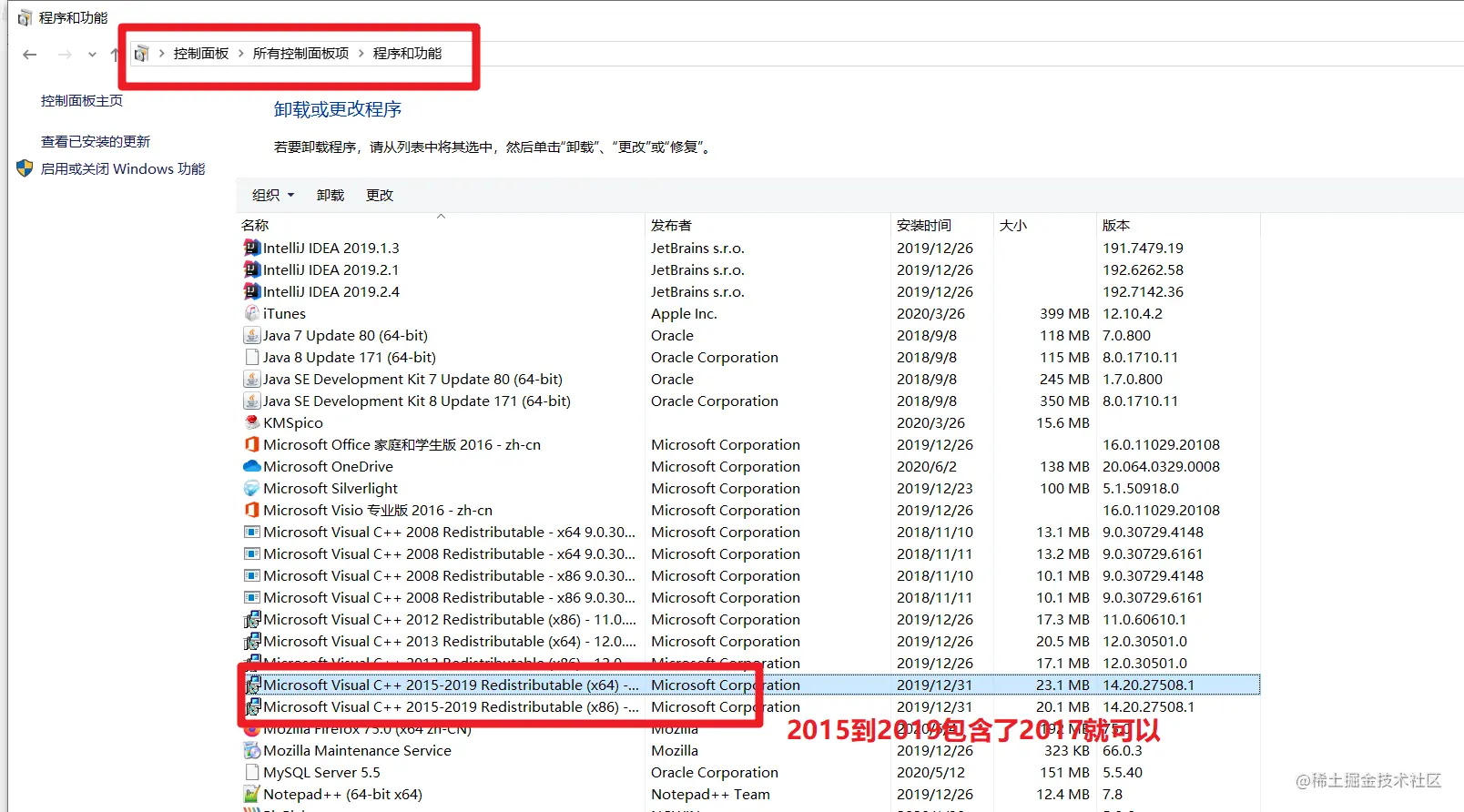 检查是否有安装VC++2017
