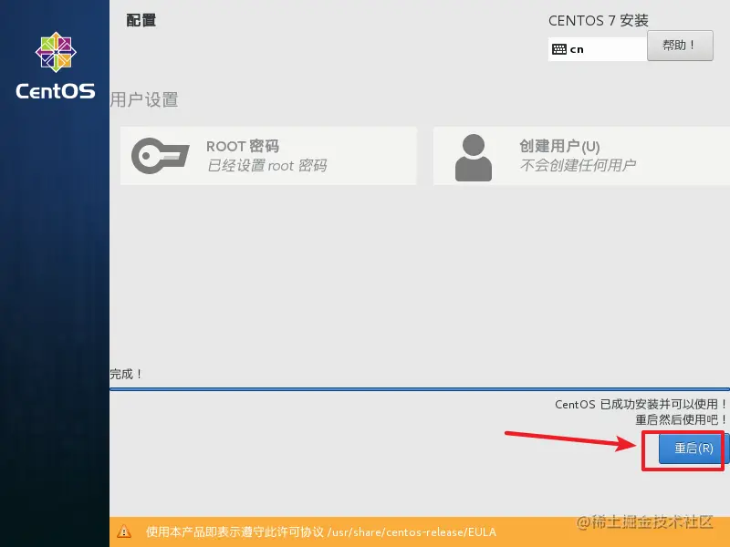 最好点重启就OK啦!--> 引导重启系统完成,输入用户名密码进入linux系统