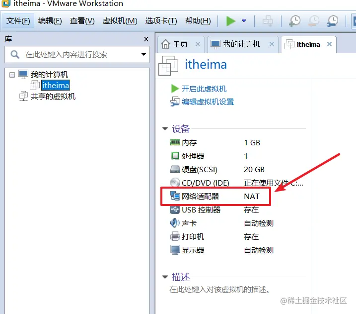 设置网络适配器为NAT连接网络模式