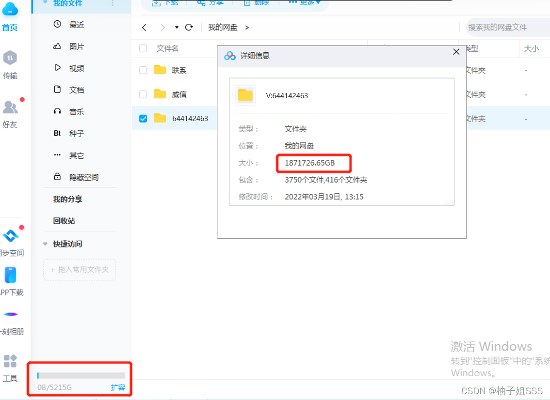 7. 再次转存幽灵文件到你网盘,此时5T的官方容量网盘就已经存进了10T的占位文件了