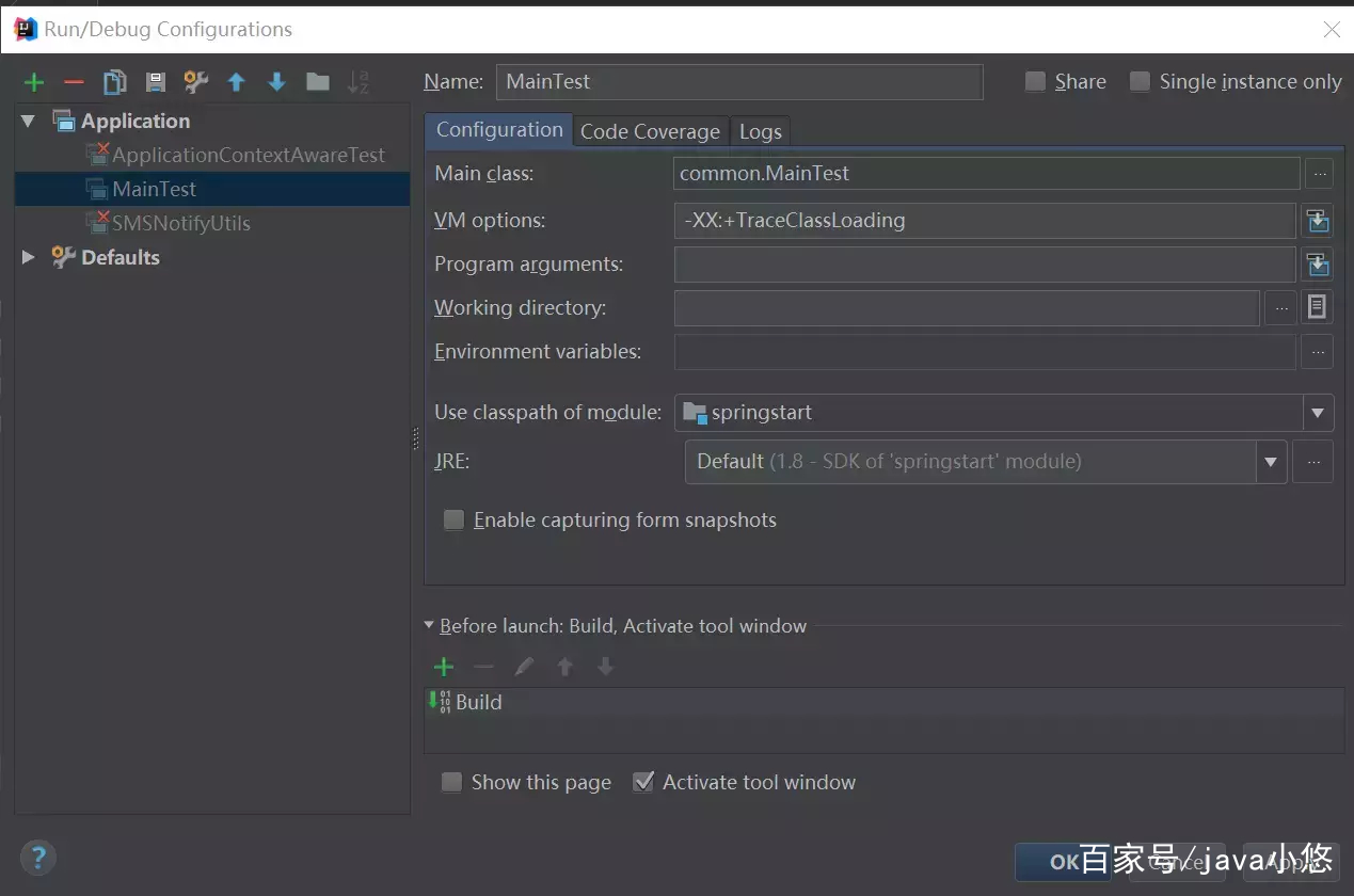 为了验证类加载,我们先配置一个JVM参数