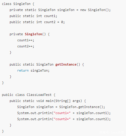SingleTon类加载初始化,按顺序初始化静态变量。
