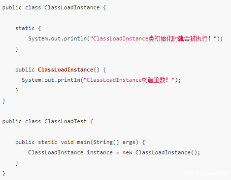 new ClassLoadInstance实例时,发现ClassLoadInstance被加载了,因此 new创建实例对象,会触发类加载进行。