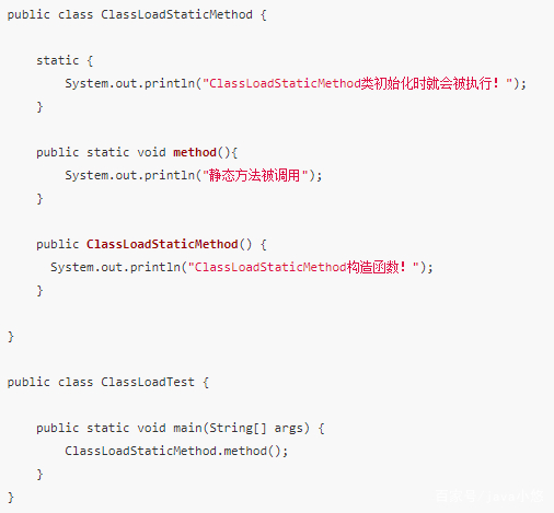 访问类ClassLoadStaticMethod的静态方法method时,发现ClassLoadStaticMethod类被加载啦,因此访问类的静态方法会触发类加载。