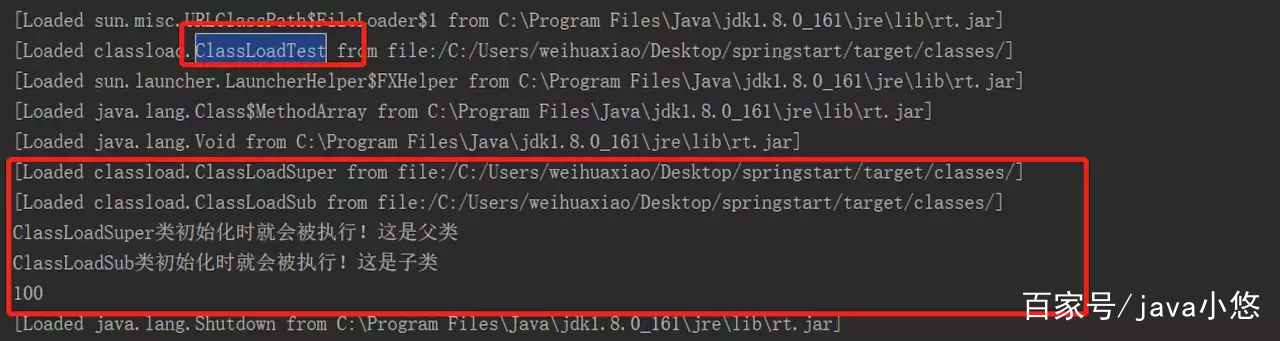 虚拟机启动时,即使有ClassLoadSub,ClassLoadSuper,ClassLoadTest等类被加载, 但ClassLoadTest最先被加载,即定义了main()方法的那个类会先触发类加载。