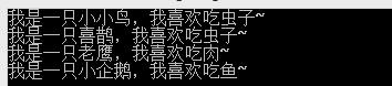 Console.WriteLine("我是一只小小鸟,我喜欢吃虫子~");